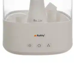 Zmienność kolorów i nowoczesne oświetlenie – nawilżacz wyposażony jest w 6 diod LED, które zmieniają kolor, oferując aż 8 trybów zmiany kolorów. Za pomocą przycisku oznaczonego symbolem słoneczka, użytkownik może wybierać pomiędzy automatyczną zmianą kolorów lub ustawić jeden z siedmiu dostępnych kolorów: biały, czerwony, żółty, zielony, niebieski, fioletowy i różowy. Funkcja ta pozwala na stworzenie odpowiedniej atmosfery w pomieszczeniu, niezależnie od pory dnia czy nastroju. Nawilżacz może również pełnić funkcję samej lampki nocnej, tworząc przytulne oświetlenie, bez potrzeby korzystania z funkcji nawilżania.