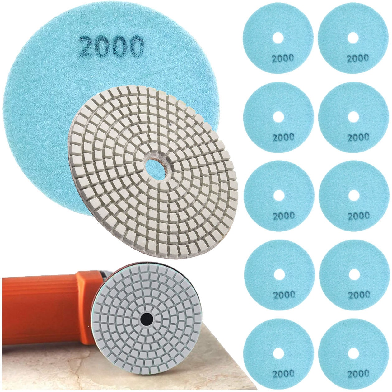 ⚙️️ TARCZA DIAMENTOWA POLERSKA 80MM DO SZLIFOWANIA GRESU PŁYTEK NA RZEP G2000 10 szt. ⚙️️