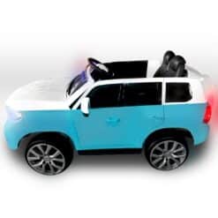 Duży pojazd typu SUV to wspaniały prezent dla dziecka, który z pewnością wywoła uśmiech na jego twarzy. To idealny upominek na urodziny lub inne wyjątkowe okazje. Pojazd został wyposażony w jasne światła LED, dzięki którym Twoje dziecko będzie zawsze widoczne podczas zabawy, nawet w pochmurne dni. Migoczące oświetlenie z pewnością robi niesamowite wrażenie! Nie daj się zaskoczyć maluchowi, który uruchomi koguty! Samochód pomieści dwoje małych pasażerów, co sprawia, że zabawa stanie się jeszcze bardziej ekscytująca. W kokpicie pojazdu czeka prawdziwa magia – sterowanie muzyką, gniazdo USB, przełącznik świateł oraz funkcja bujania z pewnością zachęcą Twoje dziecko do kreatywnej zabawy.