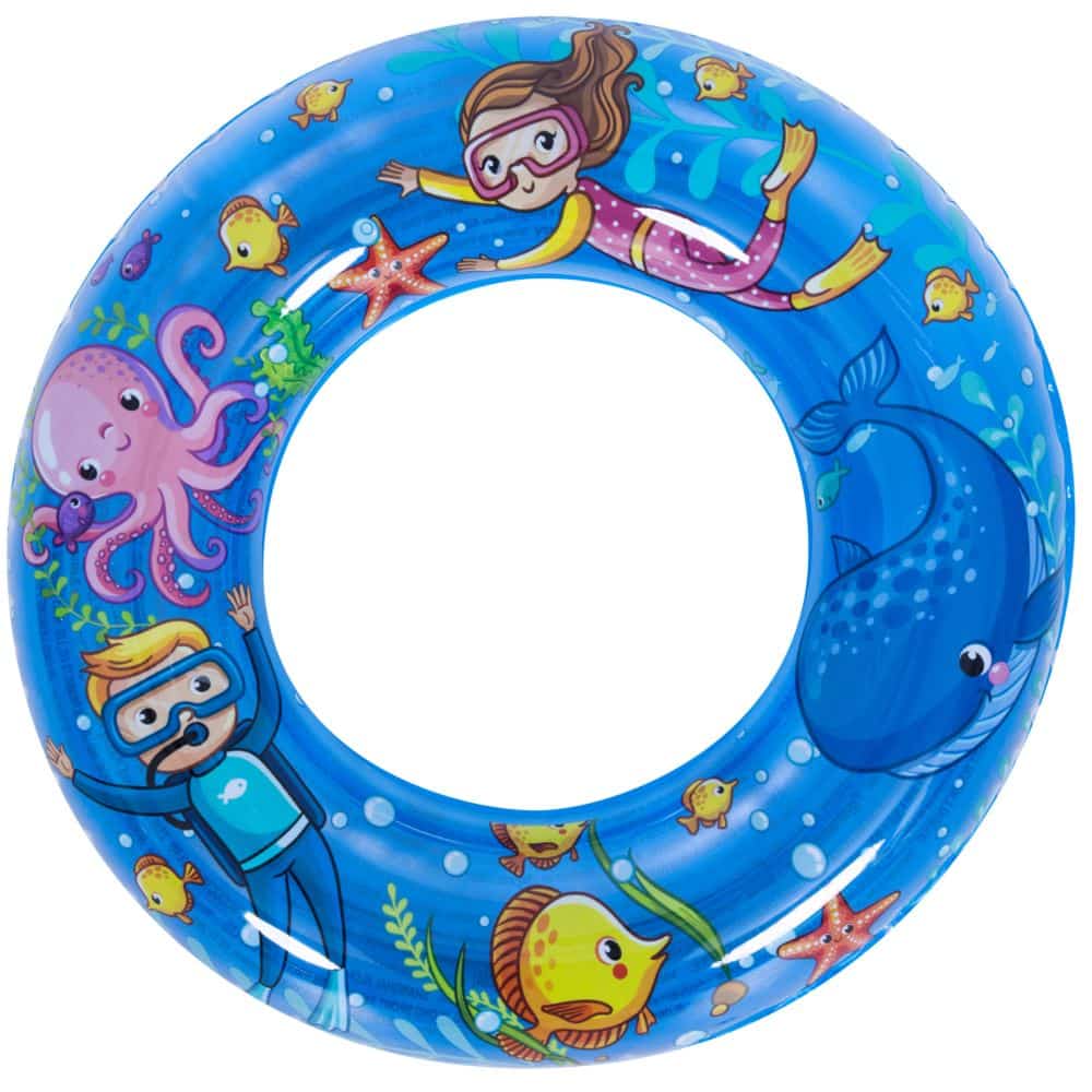 - Koło do pływania – wspiera oraz zabezpiecza dzieci, które uczą się nauki pływania. Na kole znajdują się bardzo ładne wzory wodnych zwierząt, które przyciągają uwagę oraz zachęcają dzieci do pływania.