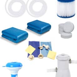 Jest to najważniejszy element wyposażenia basenu. Pozwala na utrzymanie czystej wody. Wszystkie pływające nieczystości są wciągane przez pompę i osadzają się na filtrze. Sam filtr powinien być regularnie czyszczony i wymieniany. Dodatkowo do zestawu dodajemy węże zaciski oraz sitka na nieczystości, które pozwolą utrzymać odpowiednią czystość wody w basenie.