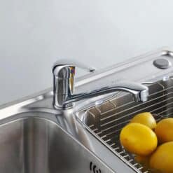 Ta elegancka bateria z chromowanym wykończeniem, obrotową wylewką i głowicą idealnie wpisuje się w każdą aranżację – od minimalistycznych po tradycyjne. Zapewnia płynne i komfortowe użytkowanie każdego dnia.