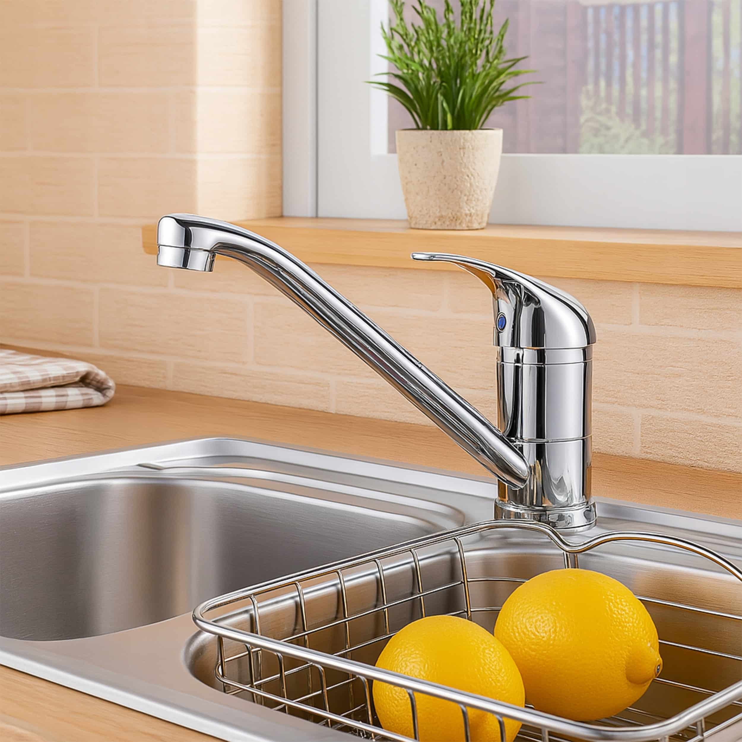 Ta elegancka bateria z chromowanym wykończeniem, obrotową wylewką i głowicą idealnie wpisuje się w każdą aranżację – od minimalistycznych po tradycyjne. Zapewnia płynne i komfortowe użytkowanie każdego dnia.