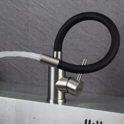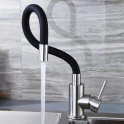 Dzięki obrotowi 360° zapewnia pełną swobodę ruchu i komfort podczas zmywania czy napełniania naczyń, a jej elegancki wygląd doskonale komponuje się z nowoczesnym wnętrzem. Dzięki matowemu, czarnemu wykończeniu i sprężystej konstrukcji wylewki, ten model nie tylko ułatwia codzienne prace przy zlewie, ale także doskonale prezentuje się w każdej kuchennej aranżacji — od klasyki po loft.