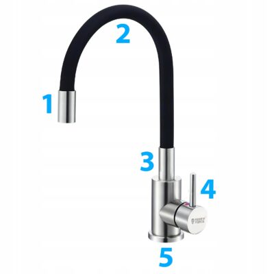 - Elastyczna, giętka wylewka – precyzyjne kierowanie strumieniem wody
