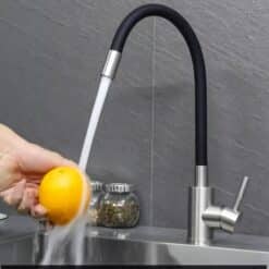 Elastyczna szyjka kranu pozwala Ci na jej dowolne ułożenie oraz obrót dookoła własnej osi – dzięki czemu bez problemu napełnisz wodą czajnik, garnek, czy podlejesz rośliny.