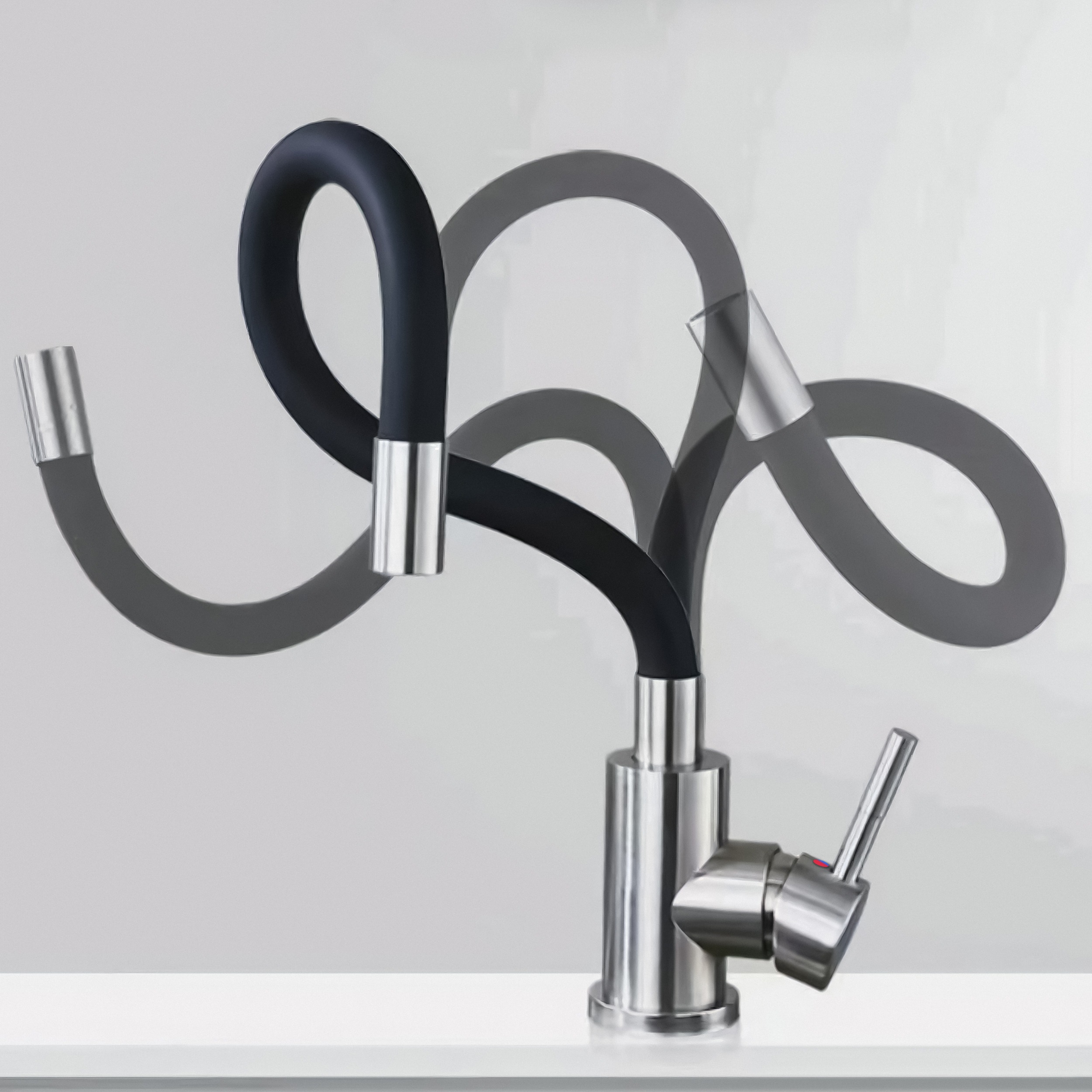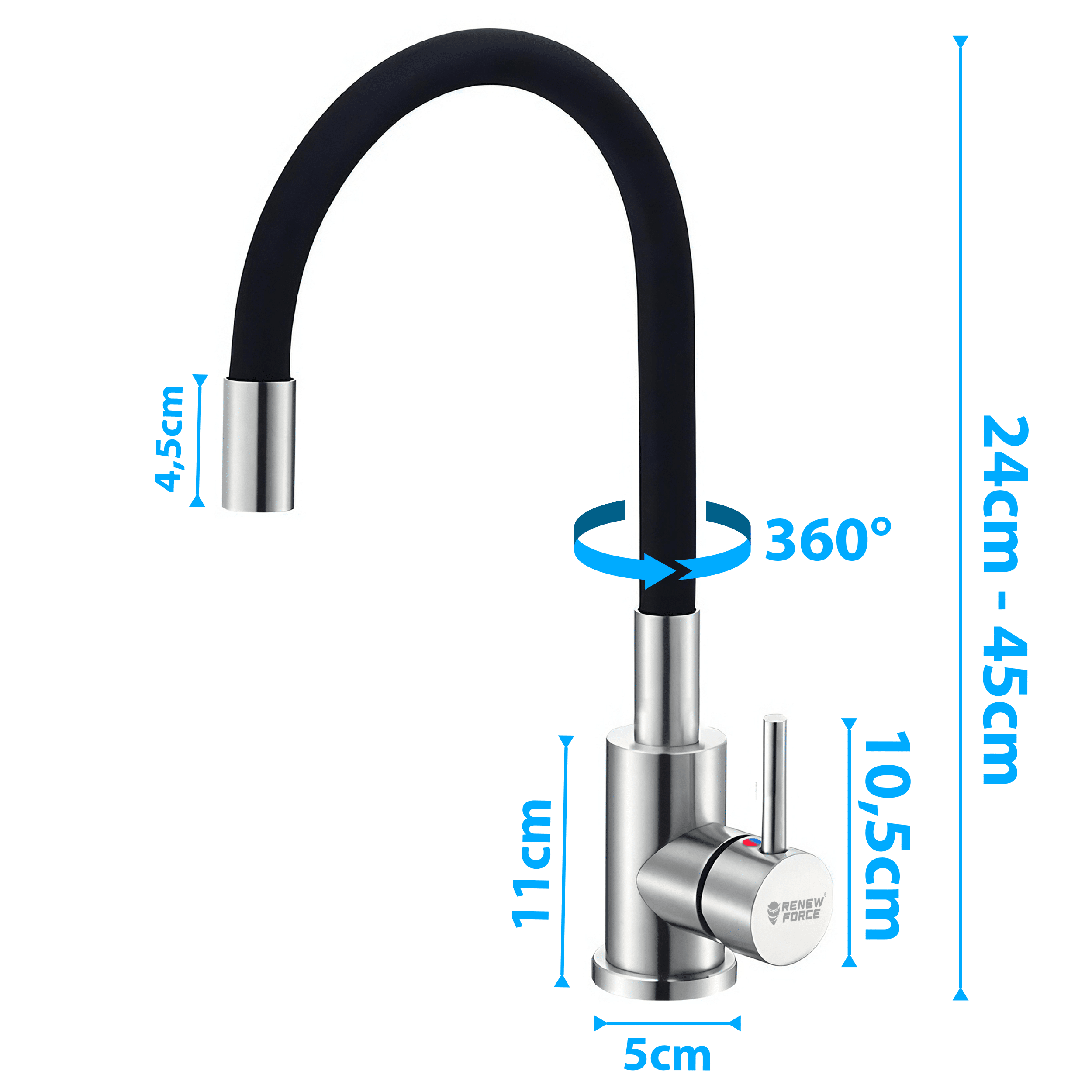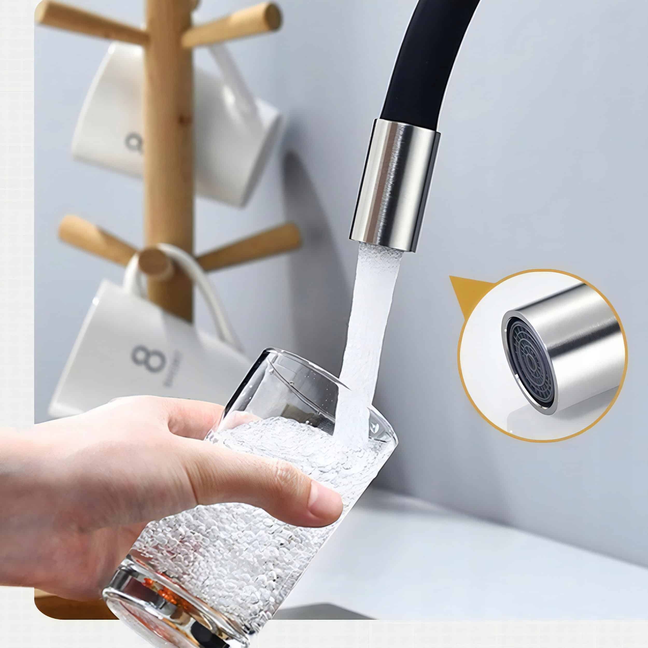 Elastyczna szyjka kranu pozwala Ci na jej dowolne ułożenie oraz obrót dookoła własnej osi – dzięki czemu bez problemu napełnisz wodą czajnik, garnek, czy podlejesz rośliny.