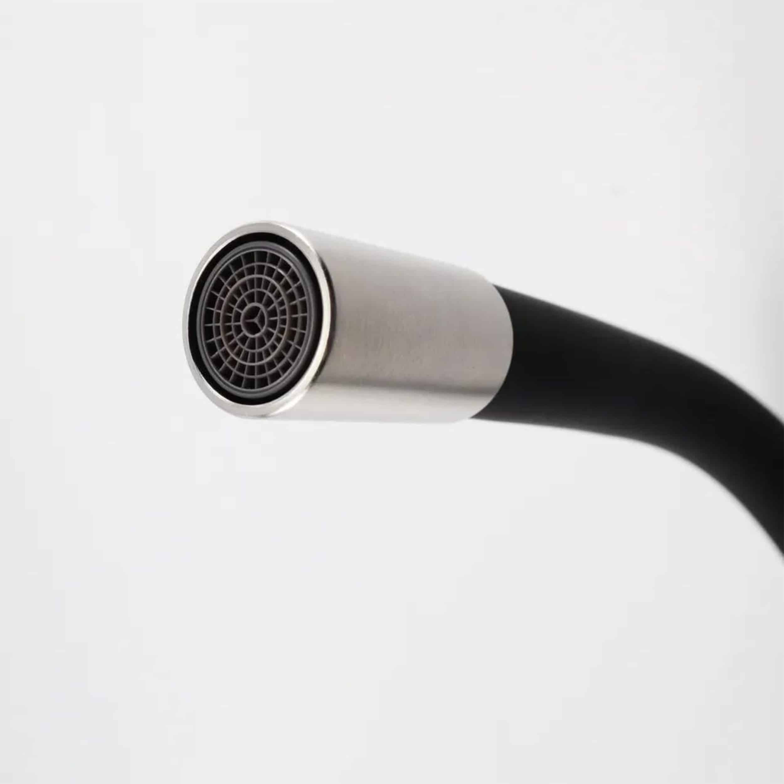Dzięki obrotowi 360° zapewnia pełną swobodę ruchu i komfort podczas zmywania czy napełniania naczyń, a jej elegancki wygląd doskonale komponuje się z nowoczesnym wnętrzem. Dzięki matowemu, czarnemu wykończeniu i sprężystej konstrukcji wylewki, ten model nie tylko ułatwia codzienne prace przy zlewie, ale także doskonale prezentuje się w każdej kuchennej aranżacji — od klasyki po loft.
