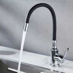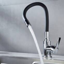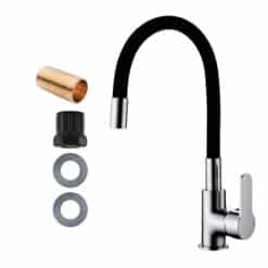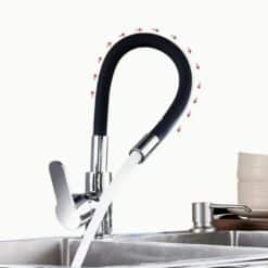 Elastyczna szyjka kranu pozwala Ci na jej dowolne ułożenie oraz obrót dookoła własnej osi – dzięki czemu bez problemu napełnisz wodą czajnik, garnek, czy podlejesz rośliny.