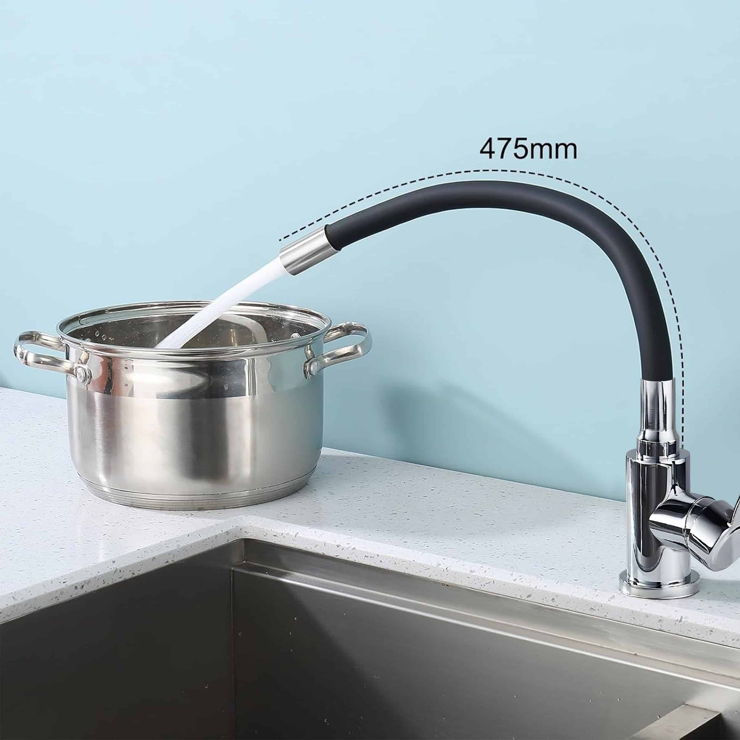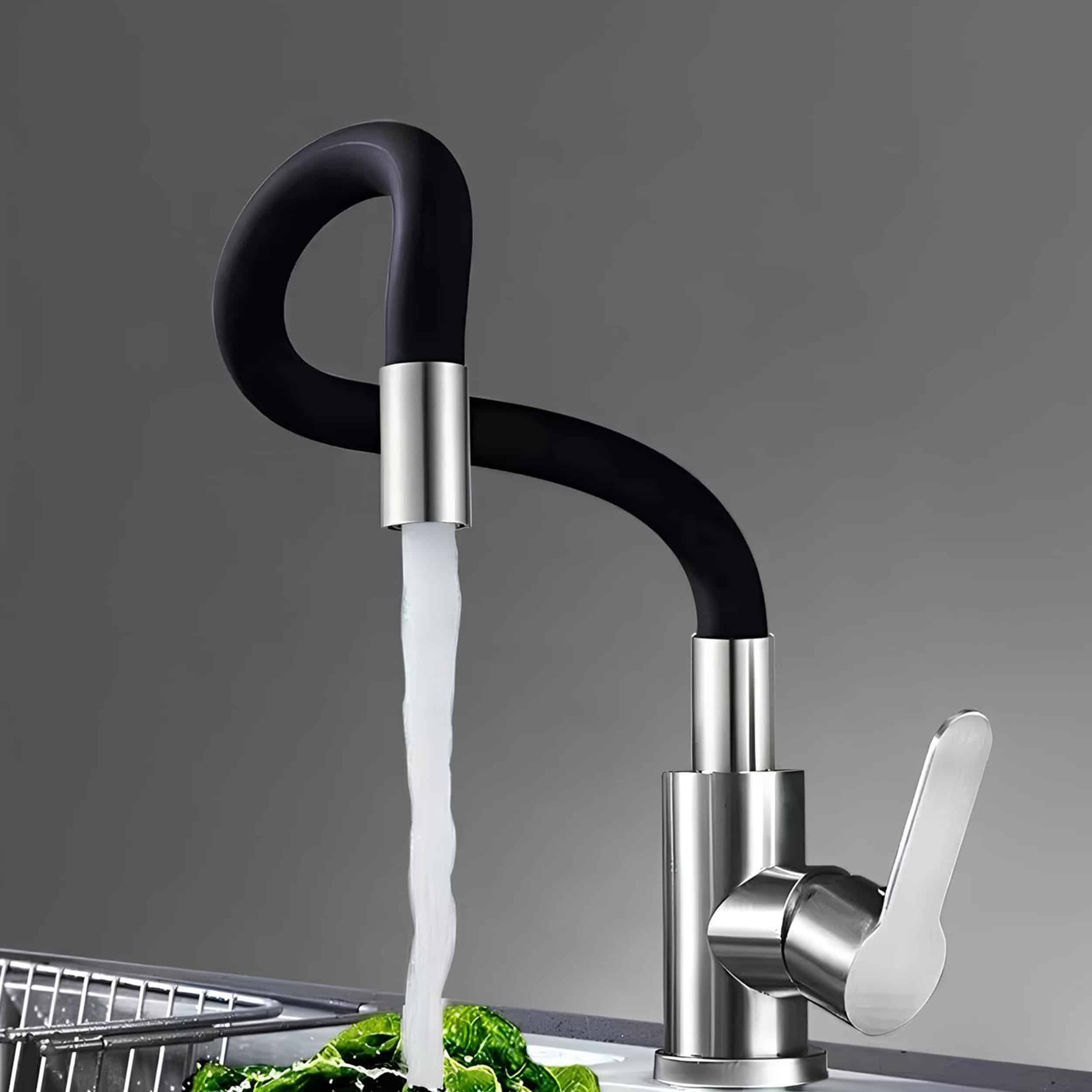 Elastyczna szyjka kranu pozwala Ci na jej dowolne ułożenie oraz obrót dookoła własnej osi – dzięki czemu bez problemu napełnisz wodą czajnik, garnek, czy podlejesz rośliny.