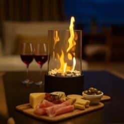 - Przyjemne ciepło i nastrojowa atmosfera – bio kominek nie tylko dekoruje wnętrze, ale też emituje przyjemne ciepło, idealne na chłodne wieczory na tarasie czy w salonie.