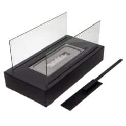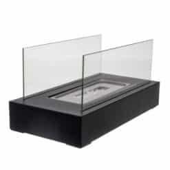 Szklane ścianki podkreślają piękno płomienia i dodają lekkości całej konstrukcji. Czarne wykończenie w stylu loft doskonale komponuje się zarówno z nowoczesnymi, jak i klasycznymi aranżacjami. Biokominek pełni funkcję praktycznego źródła ciepła oraz wyjątkowej dekoracji wnętrza.