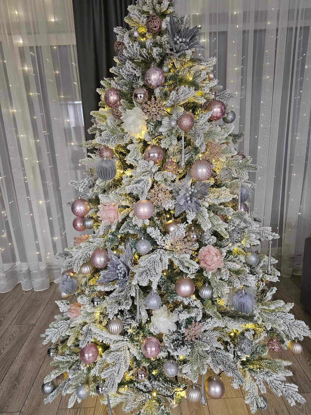 CHOINKA JAK PRAWDZIWA MOCNO OŚNIEŻONA JODŁA GĘSTA ŻYWA STOJAK 210CM PREMIUM