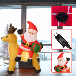 Dmuchany Święty Mikołaj z Reniferm 1,5m Ozdoba Świąteczna Podświetlenie Led