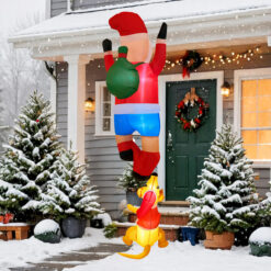 Dmuchany Święty Mikołaj z Reniferm 1,8m Ozdoba Świąteczna Podświetlenie Led