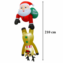 Dmuchany Święty Mikołaj z Reniferm 2,1m Ozdoba Świąteczna Podświetlenie Led