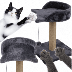 Nasz drapak dla kota w pełni zaspokaja jego aktywną naturę i instynkt pazurkowania. Słupek owinięty naturalną liną sizalową jest idealny dla kotów do ostrzenia pazurów i zapobiega niszczeniu mebli. Miękka, wytrzymała płyta EVA jest doskonała dla kotów do masażu lub pielęgnacji sierści. Co więcej, drapak dla kota ma wiszącą piłkę, którą koty mogą się bawić. Jedną z głównych zalet naszego drapaka dla kota jest wspaniale zaprojektowana drewniana podstawa, która jest stabilna i pokryta pluszem zapewniającym wysoki komfort, dzięki czemu jest idealnym miejscem dla kotów, gdy są zmęczone zabawą. Minimalistyczna konstrukcja oznacza, że można go ustawić bez większego wysiłku i czasu. Dzięki swojemu eleganckiemu wyglądowi drapak dla kota jest idealnym prezentem dla kota i doskonałą ozdobą domu.
