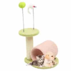 Drapanie to u futrzaków naturalna potrzeba i element higieny. Nie ma sposobu aby oduczyć kota tego procederu, dlatego aby ochronić meble i cenne przedmioty warto zaopatrzyć się właśnie w drapak. Drapak ma niewielkie rozmiary i klasyczny design, dzięki czemu będzie pasował do każdego rodzaju wnętrz. Pluszowa podstawa zapewnia kotu miękkość i ciepło podczas drapania słupka. Wytrzymały, sizalowy słupek umożliwiają mruczkowi zaspokojenie naturalnej potrzeby drapania. Mięciutki tunel i zawieszona nad nim zabawki stanowią idealne miejsce do wypoczynku i zabawy. Znajdujący się na szczycie drapaka podest umożliwia kotu wygodne wylegiwanie się i obserwację otoczenia.