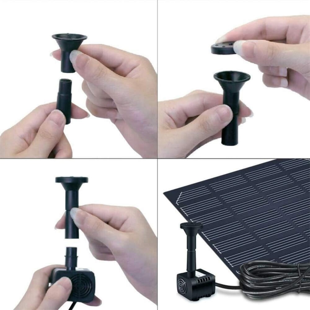 Nasze fontanna solarna posiada 4 różne nasadki umożliwiające wybór dowolnego strumienia wody, na przykład cienki i wysoki lub gęsty i niski, w zależności od upodobań.