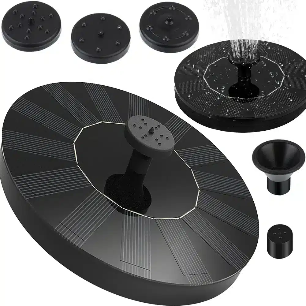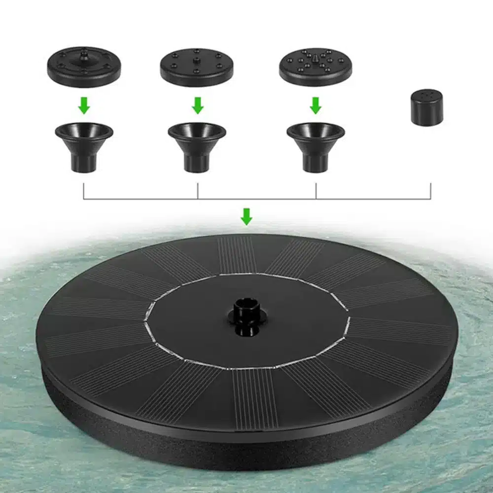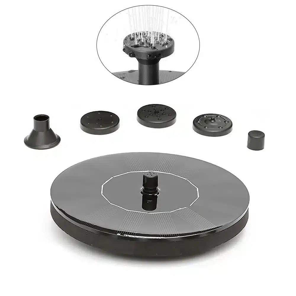 Nasze fontanna solarna posiada 4 różne nasadki umożliwiające wybór dowolnego strumienia wody, na przykład cienki i wysoki lub gęsty i niski, w zależności od upodobań.