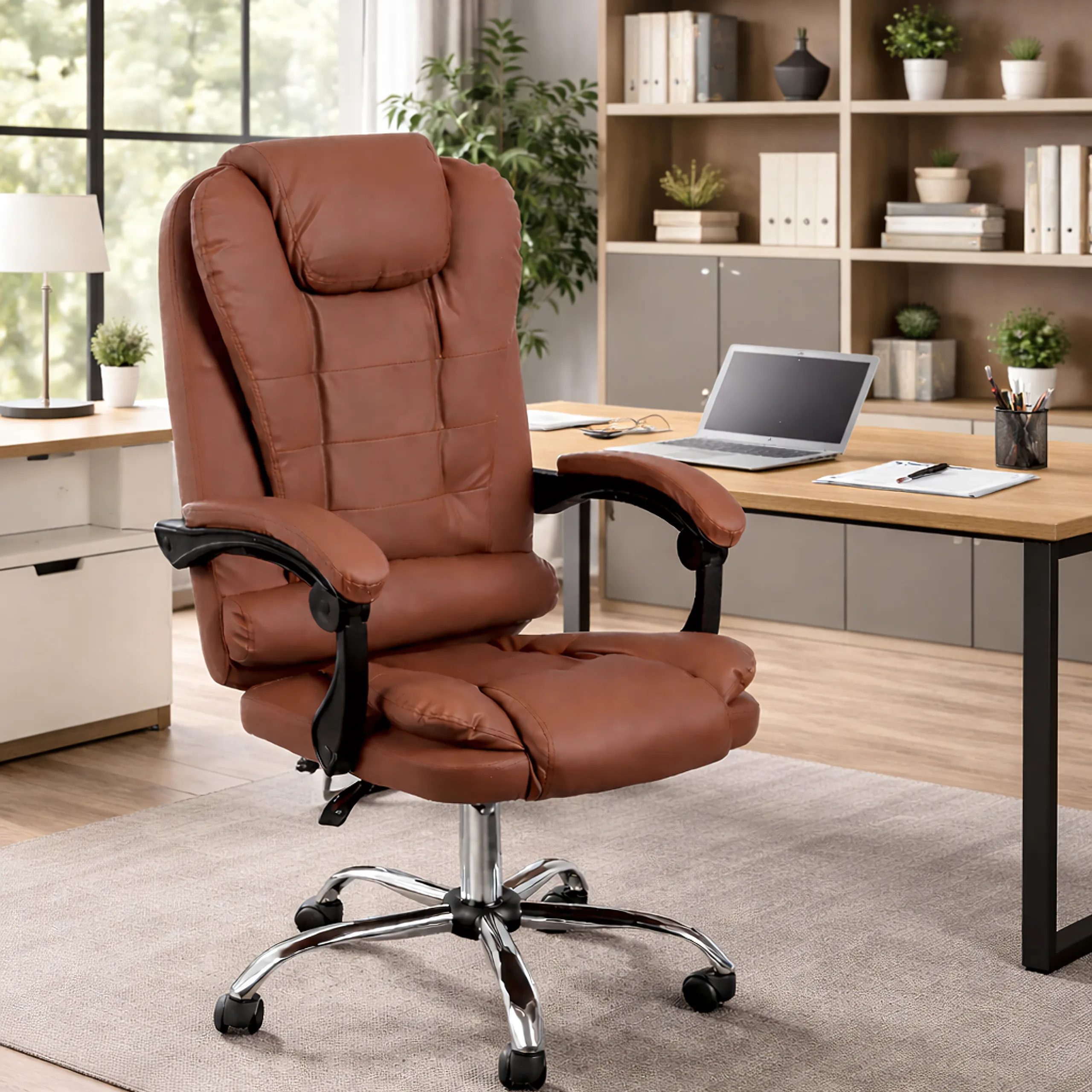 Stylowy, ergonomiczny fotel biurowy wykonany z wysokiej jakości skóry ekologicznej to doskonały wybór dla osób, które spędzają wiele godzin przy biurku. Zaprojektowany z myślą o komforcie, zdrowej postawie i eleganckim wyglądzie, świetnie sprawdzi się zarówno w biurze, jak i w domowym gabinecie.