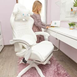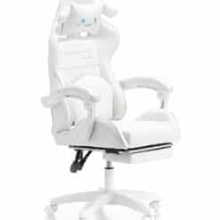 Ten fotel gamingowy został zaprojektowany z myślą o najmłodszych wielbicielach gier komputerowych oraz tych dzieci, które spędzają długie godziny przy biurku. Kubełkowy kształt siedziska zapewni odpowiednią pozycję ciała, która jest bardzo ważna przy rosnących pociechach. Dwie urocze, regulowane poduszki mają za zadanie wspierać odcinek lędźwiowy, szyjny oraz dawać jeszcze większy komfort użytkowania. Chmurka ma wbudowany masażer, który rozluźni spięte mięśnie po całym dniu nauki i zabawy.