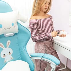 Ten fotel gamingowy został zaprojektowany z myślą o najmłodszych wielbicielach gier komputerowych oraz tych dzieci, które spędzają długie godziny przy biurku. Kubełkowy kształt siedziska zapewni odpowiednią pozycję ciała, która jest bardzo ważna przy rosnących pociechach. Dwie urocze, regulowane poduszki mają za zadanie wspierać odcinek lędźwiowy, szyjny oraz dawać jeszcze większy komfort użytkowania. Chmurka ma wbudowany masażer, który rozluźni spięte mięśnie po całym dniu nauki i zabawy.