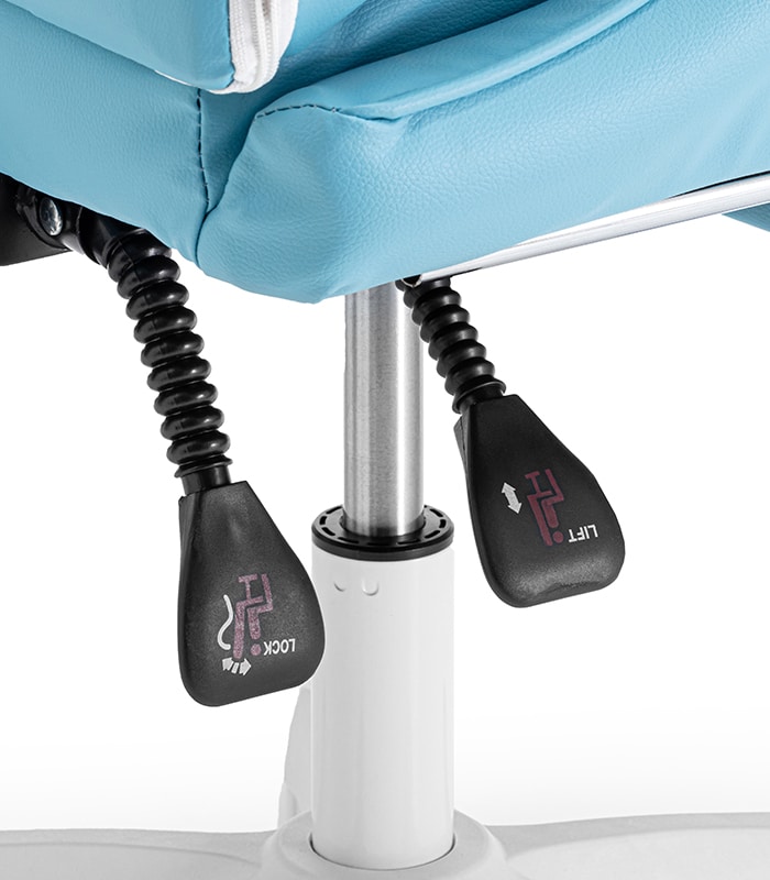 Regulowane oparcie fotela daje nam możliwość idealnego dopasowania go podczas grania, relaksu lub nauki przed komputerem. Prawidłowa pozycja siedząca u dzieci jest bardzo ważna, aby uniknąć problemów z kręgosłupem w dorosłości. Dodatkowo ruchome poduszki można dostosować do krzywizny pociechy. Pod siedziskiem zamontowana jest dźwignia, która pozwala blokować ustawienia fotela. Pozostawienie krzesła niezablokowanego spowoduje, że siedzenie zamieni się w wygodny bujak.