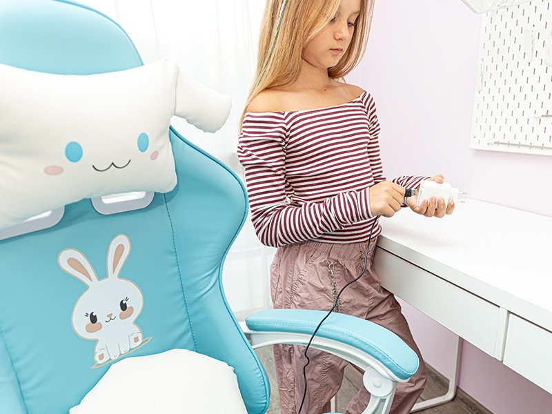 Fotel gamingowy dziecięcy z wysuwanym podnóżkiem