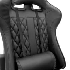Fotel gamingowy o kubełkowym kształcie to nie tylko mebel – to prawdziwa oaza komfortu, stworzona z myślą o pasjonatach gier komputerowych. Wyjątkowa konstrukcja tego fotela zapewnia optymalne wsparcie dla kręgosłupa, eliminując ryzyko bólu pleców, który towarzyszy długotrwałemu siedzeniu w niewłaściwej pozycji. Dzięki regulowanym poduszkom w odcinku szyjnym i lędźwiowym fotel doskonale dopasowuje się do kształtu ciała, gwarantując wygodę, która pozwala skupić się na grze lub pracy przez wiele godzin. Dodatkowo dla pełni relaksu fotel został wyposażony w funkcję masażu, umieszczoną w dolnej poduszce. Sprawia ona, że każda chwila spędzona w nim staje się prawdziwą przyjemnością.