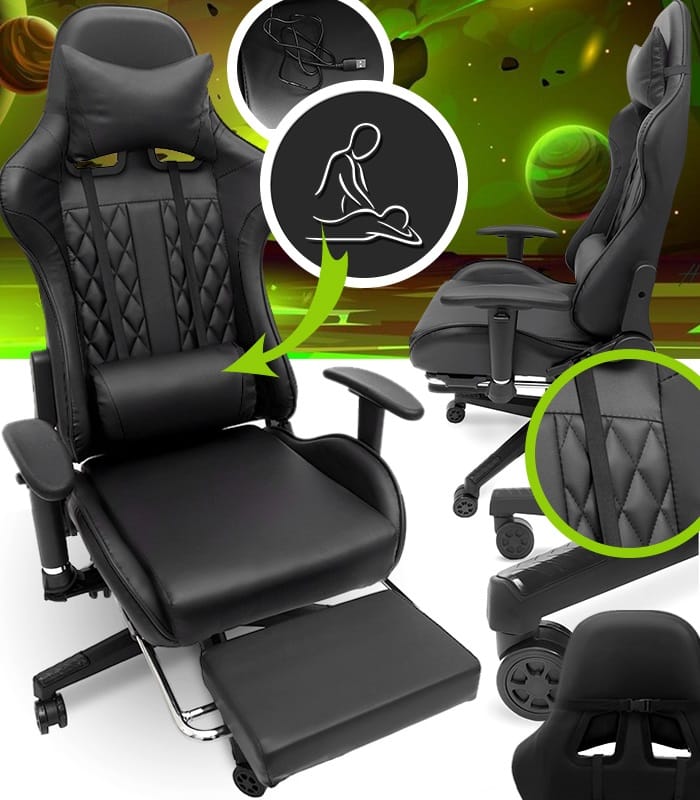 Fotel gamingowy o kubełkowym kształcie to nie tylko mebel – to prawdziwa oaza komfortu, stworzona z myślą o pasjonatach gier komputerowych. Wyjątkowa konstrukcja tego fotela zapewnia optymalne wsparcie dla kręgosłupa, eliminując ryzyko bólu pleców, który towarzyszy długotrwałemu siedzeniu w niewłaściwej pozycji. Dzięki regulowanym poduszkom w odcinku szyjnym i lędźwiowym fotel doskonale dopasowuje się do kształtu ciała, gwarantując wygodę, która pozwala skupić się na grze lub pracy przez wiele godzin. Dodatkowo dla pełni relaksu fotel został wyposażony w funkcję masażu, umieszczoną w dolnej poduszce. Sprawia ona, że każda chwila spędzona w nim staje się prawdziwą przyjemnością.