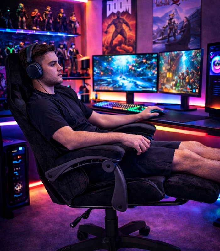 Nowoczesny fotel gamingowy z zamszowym siedziskiem to doskonałe rozwiązanie dla osób oczekujących maksymalnego komfortu, trwałości oraz eleganckiego wyglądu. Jednolita kolorystyka w połączeniu z zamszową tapicerką nadaje fotelowi prestiżowy i uniwersalny charakter, idealny do biura, gabinetu oraz stanowiska gamingowego. Ten fotel gamingowy z zamszowym materiałem to połączenie komfortu, trwałości i ponadczasowego stylu. Sprawdzi się doskonale zarówno w codziennej pracy, jak i podczas intensywnego grania.