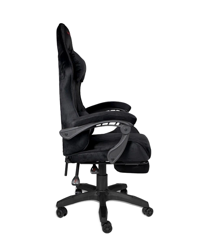 Siedzisko i oparcie zostały pokryte wysokiej jakości materiałem zamszowym, który jest miękki, przyjemny w dotyku i estetyczny. Zamszowa tapicerka zwiększa komfort siedzenia, poprawia cyrkulację powietrza oraz podkreśla nowoczesny charakter fotela. Wypełnienie stanowi gąbka o grubości 7,5 cm, która dopasowuje się do sylwetki użytkownika. Sprężysta pianka zapewnia wygodę i pomaga ograniczyć zmęczenie nawet podczas wielogodzinnego siedzenia.