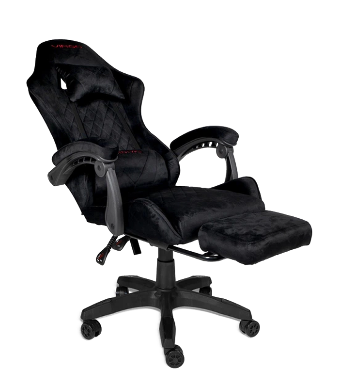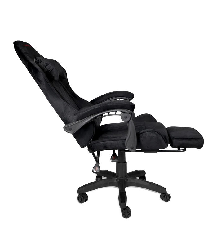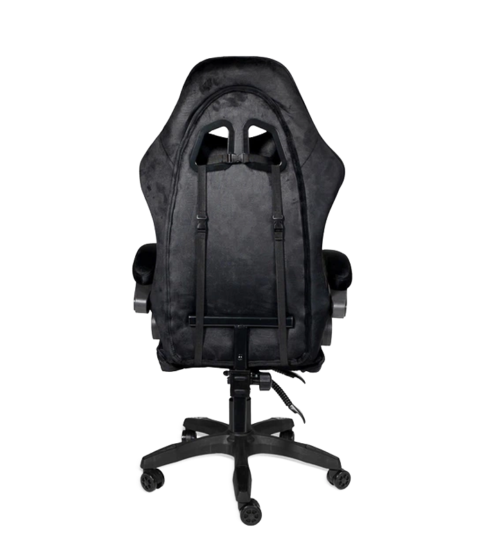 Czarny fotel gamingowy z zamszowym siedziskiem