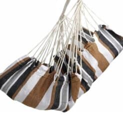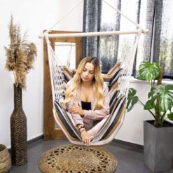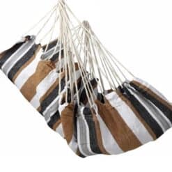 Od dziś możesz mieć swoje wyjątkowe miejsce w salonie, na tarasie czy w ogrodzie. Nasze krzesło brazylijskie przeniesie Cię w świat relaksu i błogiego odpoczynku. Hamak dostępny jest w uniwersalnej kolorystyce, która będzie pasować do każdego otoczenia. W komplecie otrzymasz dwie wygodne poduszki, które możesz dowolnie ułożyć, aby poprawić komfort swojego wypoczynku. Produkt jest z wytrzymałego, naturalnego materiału, który zapewnia dobrą wentylację. Hamak może być zawieszony na haku bądź pałąku, wedle uznania.
