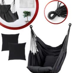 Fotel wiszący, krzesło brazylijskie, huśtawka czarny + 2x poduszka