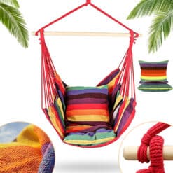 Fotel wiszący, krzesło brazylijskie, huśtawka wielokolorowy + 2x poduszka