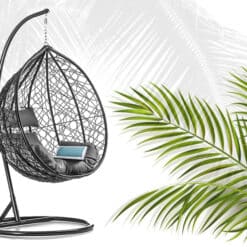 Fotel wiszący ogrodowy, kokon, bujak – szary z poduszką