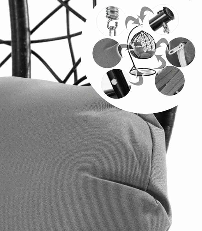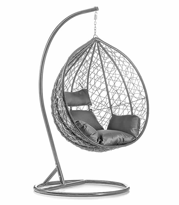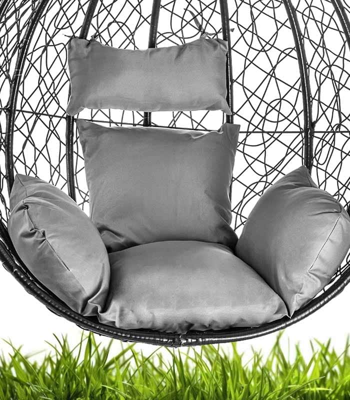 Fotel wiszący ogrodowy, kokon, bujak – szary z poduszką