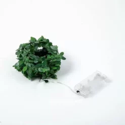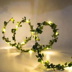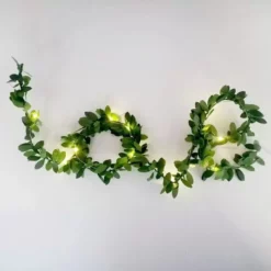 Łańcuch ma kształt liści w kolorze zielonym, dzięki czemu znajdzie zastosowanie nie tylko na święta. Druciki, utrzymujące girlandę, wykonane zostały z miedzi i otulone transparentnym kablem, co dodaje zestawowi dodatkowego uroku.