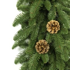 Girlanda to dekoracyjny element wykonany z gałązek syntetycznych, które imitują naturalne gałęzie, ale są bardziej trwałe i odporne na warunki atmosferyczne. Gałązki wykonane z materiału PE (polietylen) mają trójwymiarową strukturę, co nadaje girlandzie realistyczny wygląd i głębię