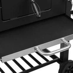 - Mobilność – kółka ułatwiają przemieszczanie grilla, co pozwala na łatwe dostosowanie miejsca grillowania,