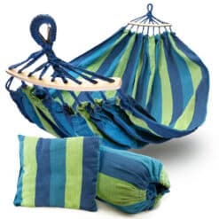 Hamak ogrodowy dwuosobowy z poprzeczką niebieski 250x150cm + poduszka