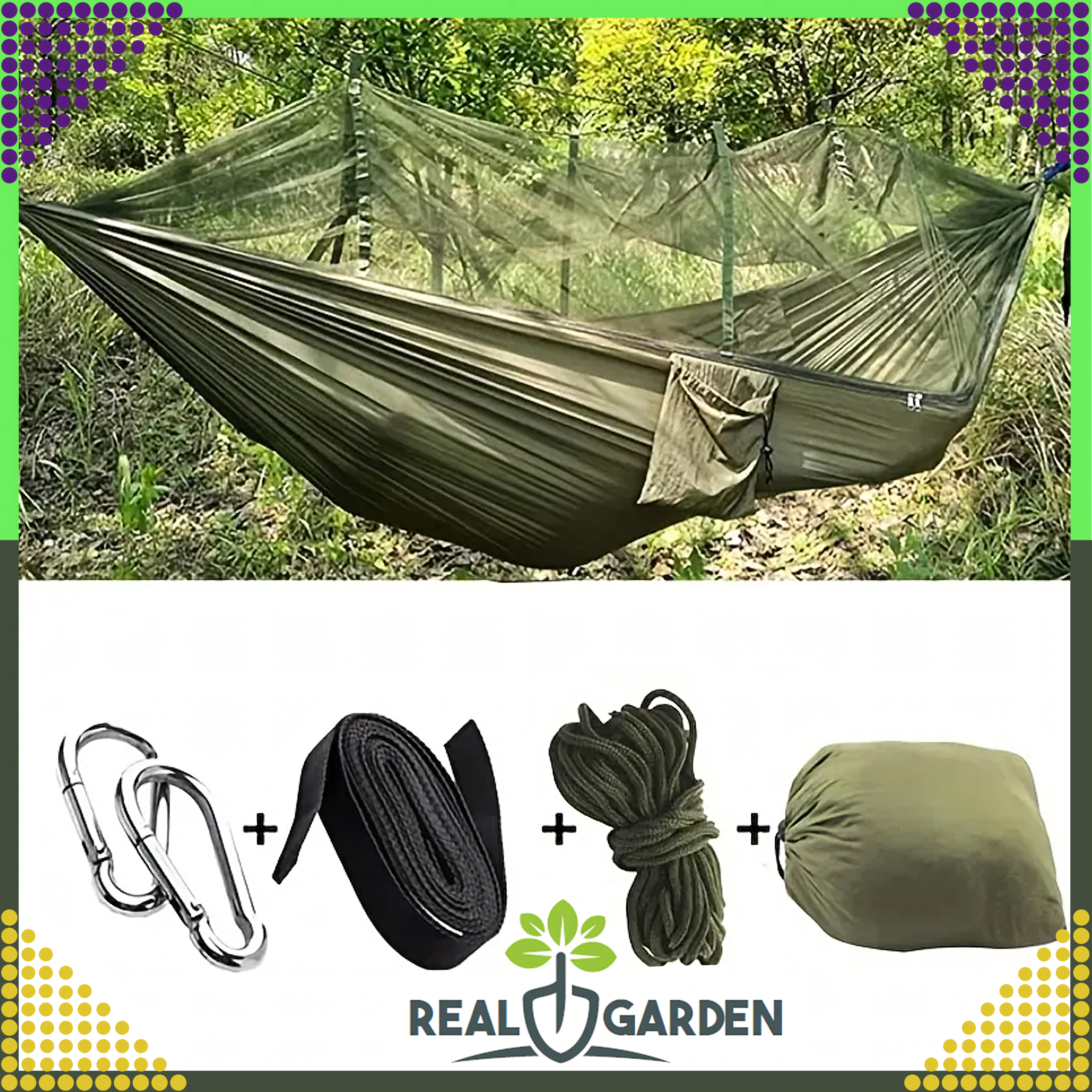 - Moskitiera w zestawie – chroni przed owadami, umożliwiając spokojny sen i relaks w plenerze.