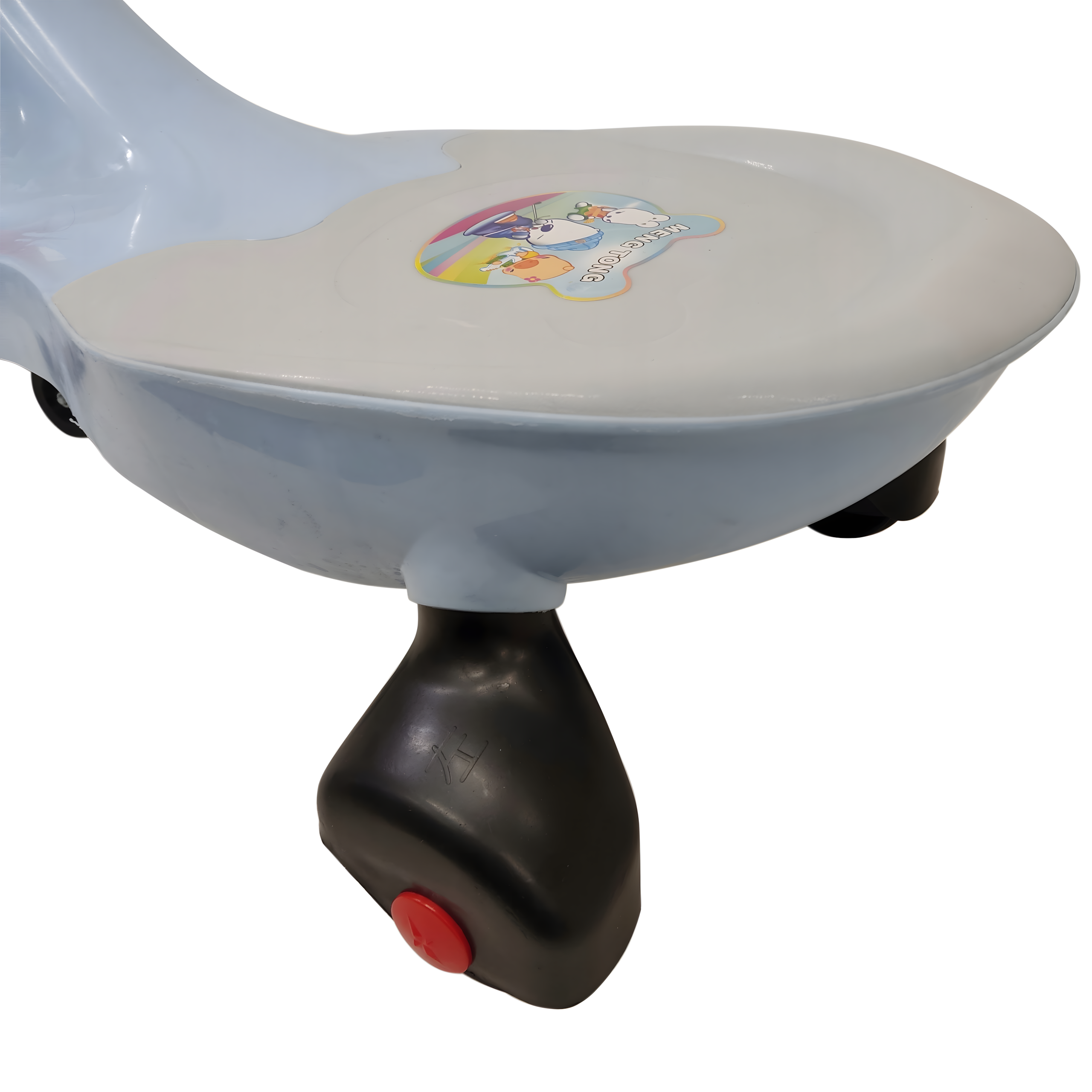 Siła mięśni malucha wystarczy, aby zacząć super zabawę kręcąc kierownicą w prawo i w lewo. Jeździk grawitacyjny posiada szerokie, profilowane siedzenie oraz antypoślizgowe ślady na stopy, co zwiększa komfort jazdy i zapobiega ślizganiu się w trakcie jazdy.