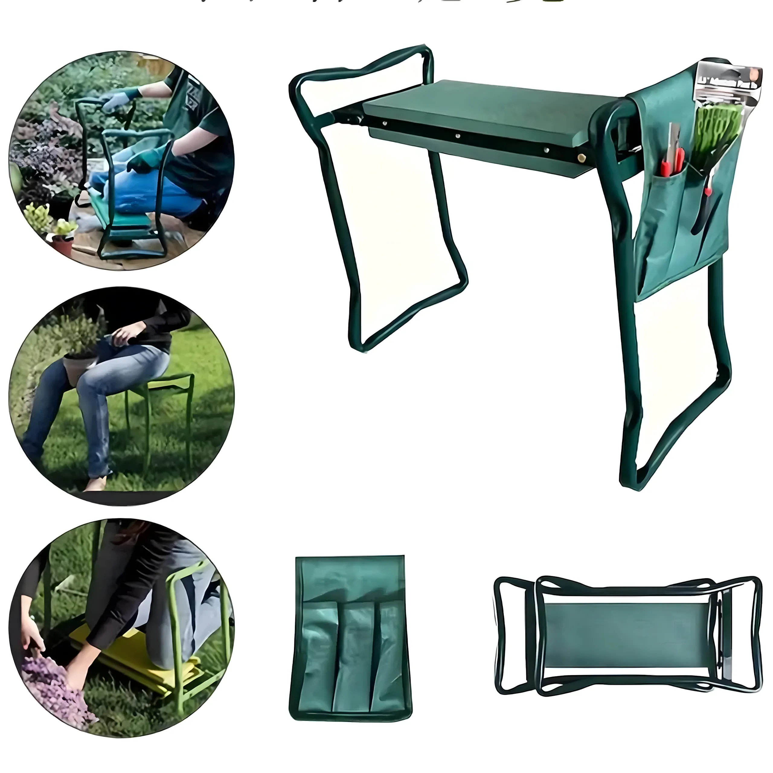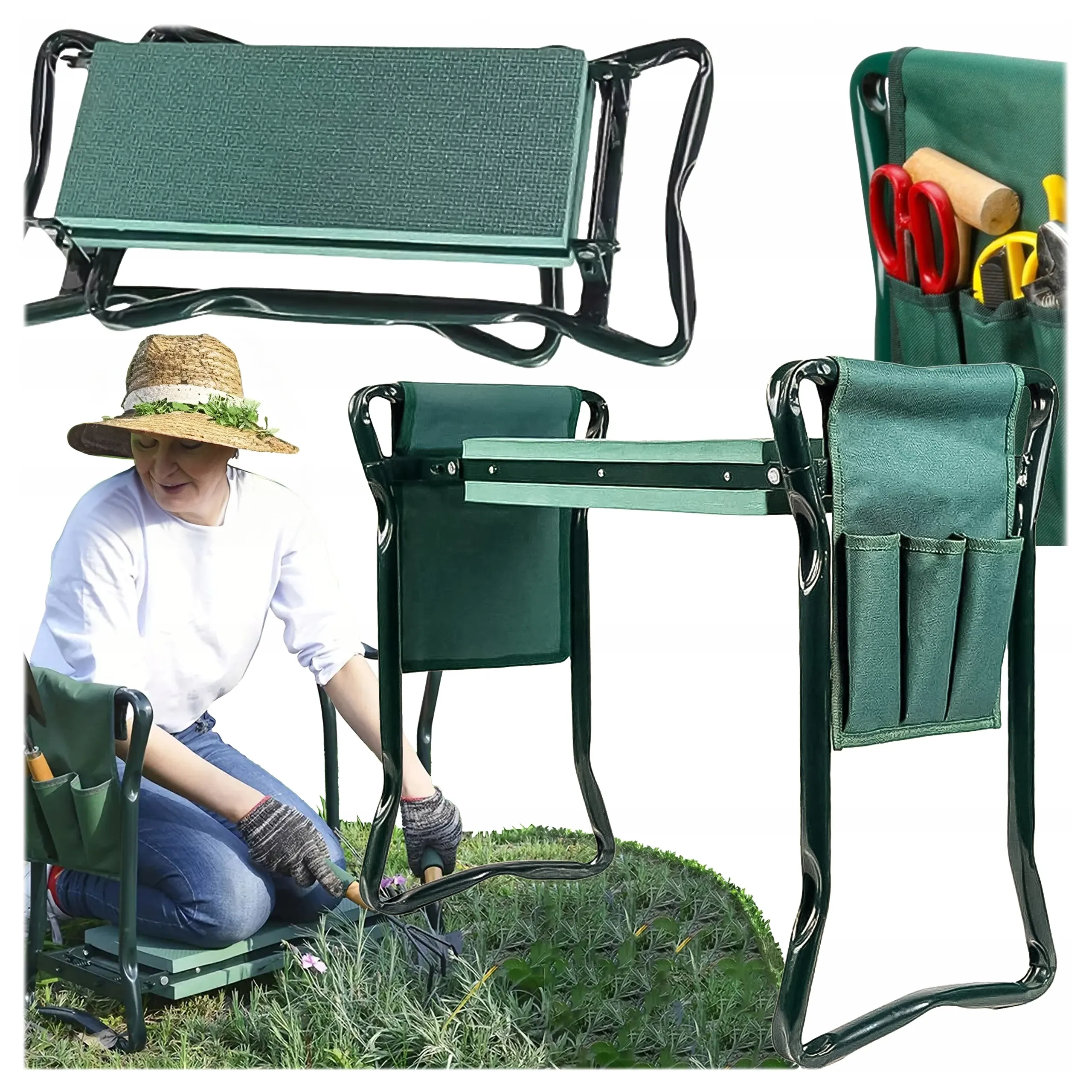Klęcznik ogrodowy składany 3w1 – taboret, krzesło i przybornik na narzędzia