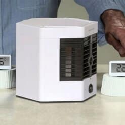 Całkowicie nowy i ulepszony klimatyzator, który zamienia gorące pomieszczenia w chłodne miejsca, zapewniając całkowity komfort, teraz jeszcze lepiej dzięki większej mocy chłodzenia. Jego elegancka, kompaktowa konstrukcja pasuje do biurka, szafki nocnej, lub stolika kawowego – wszędzie tam gdzie tego potrzebujesz! Świetnie nadaje się do zakątków do czytania, pracy, pokoi w akademiku, biur, kamperów, piwnic, garaży i nie tylko.