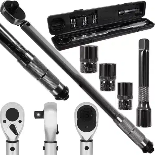 Klucz dynamometryczny 1/2″ z nasadkami i przedłużką – zestaw narzędzi precyzyjnych