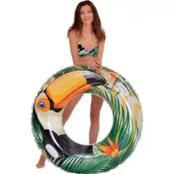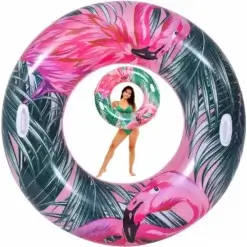 Realistyczne roślinne nadruki na powierzchni koła z pewnością wyróżnią jego użytkownika na tle innych plażowiczów i przyciągnie wzrok niejednej osoby. Tropikalne wzory z motywem ptaków flaminga i tukana zostały stworzone specjalnie dla osób, które nie znoszą nudy i lubią dobrze się bawić. Żywe kolory koła sprawiają, że zdjęcia wykonane z dmuchańcem w tle będą idealne do publikacji w mediach społecznościowych.