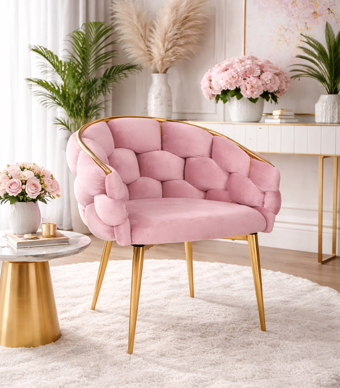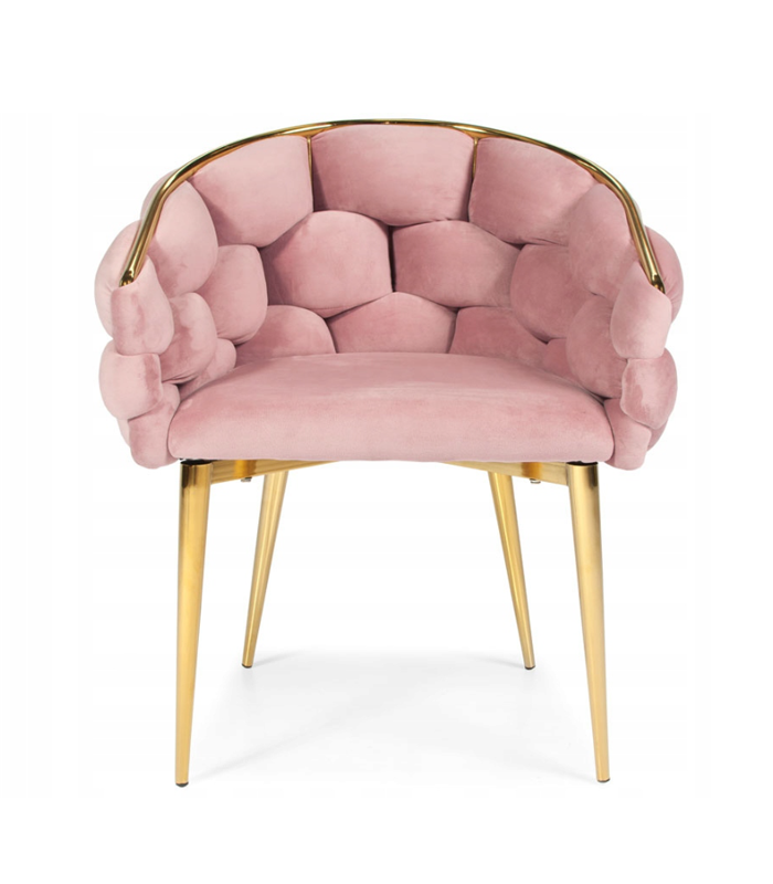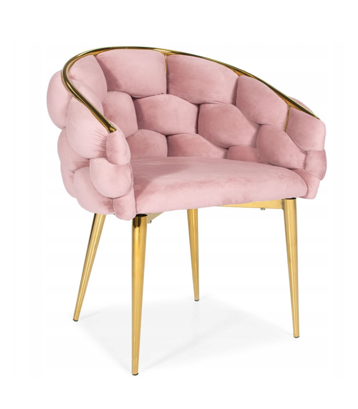 Krzesło BALLOON w eleganckim, szarym odcieniu to połączenie nowoczesnej formy z wyrafinowanym detalem. Zaokrąglona linia oparcia oraz dekoracyjne, wypukłe przeszycia tworzą efekt przytulnej, otulającej konstrukcji, która nadaje wnętrzu charakteru. Złote nogi w połyskującym wykończeniu stanowią stylowy kontrast dla stonowanej szarości, dzięki czemu model doskonale odnajdzie się zarówno w aranżacjach glamour, jak i w bardziej minimalistycznych, eleganckich przestrzeniach.